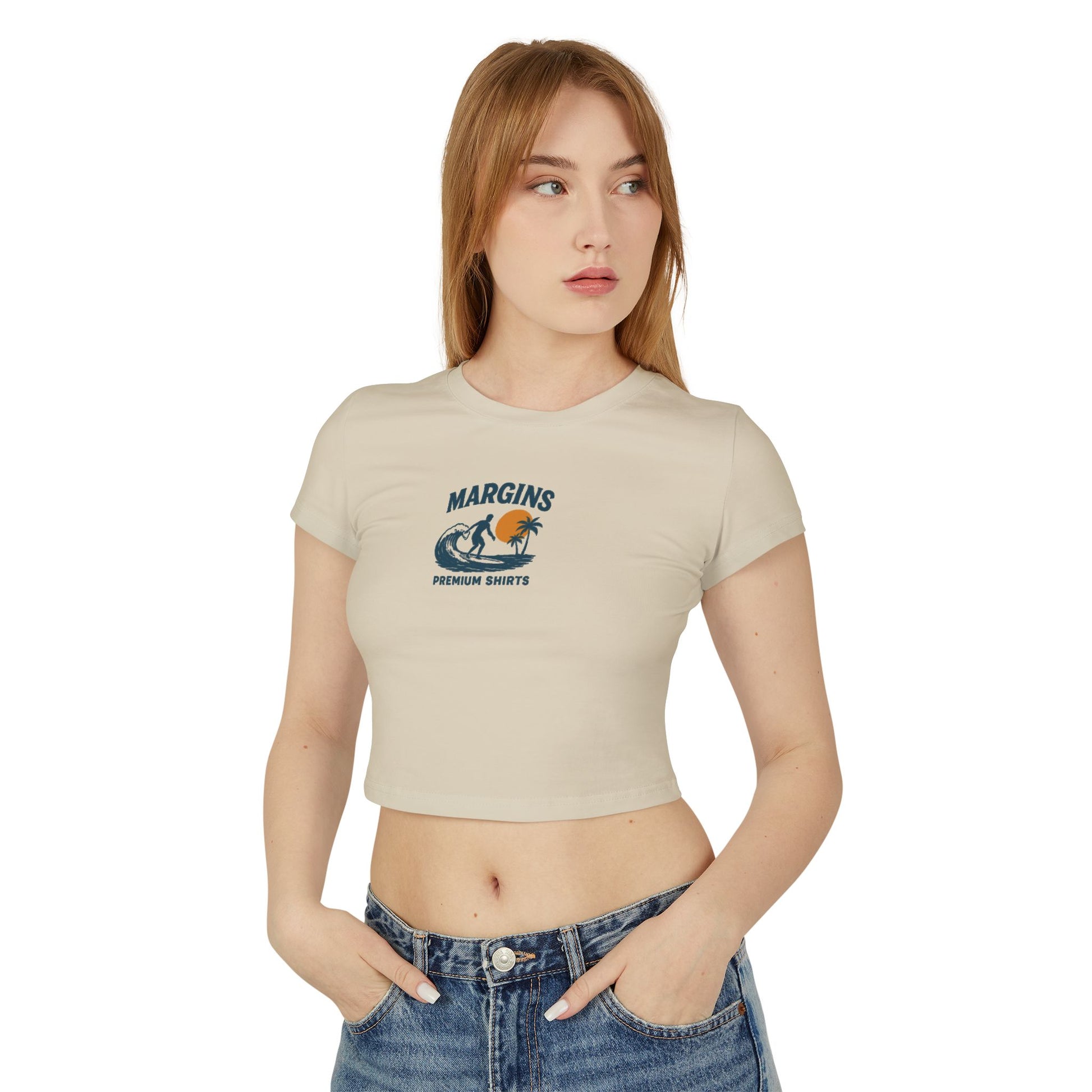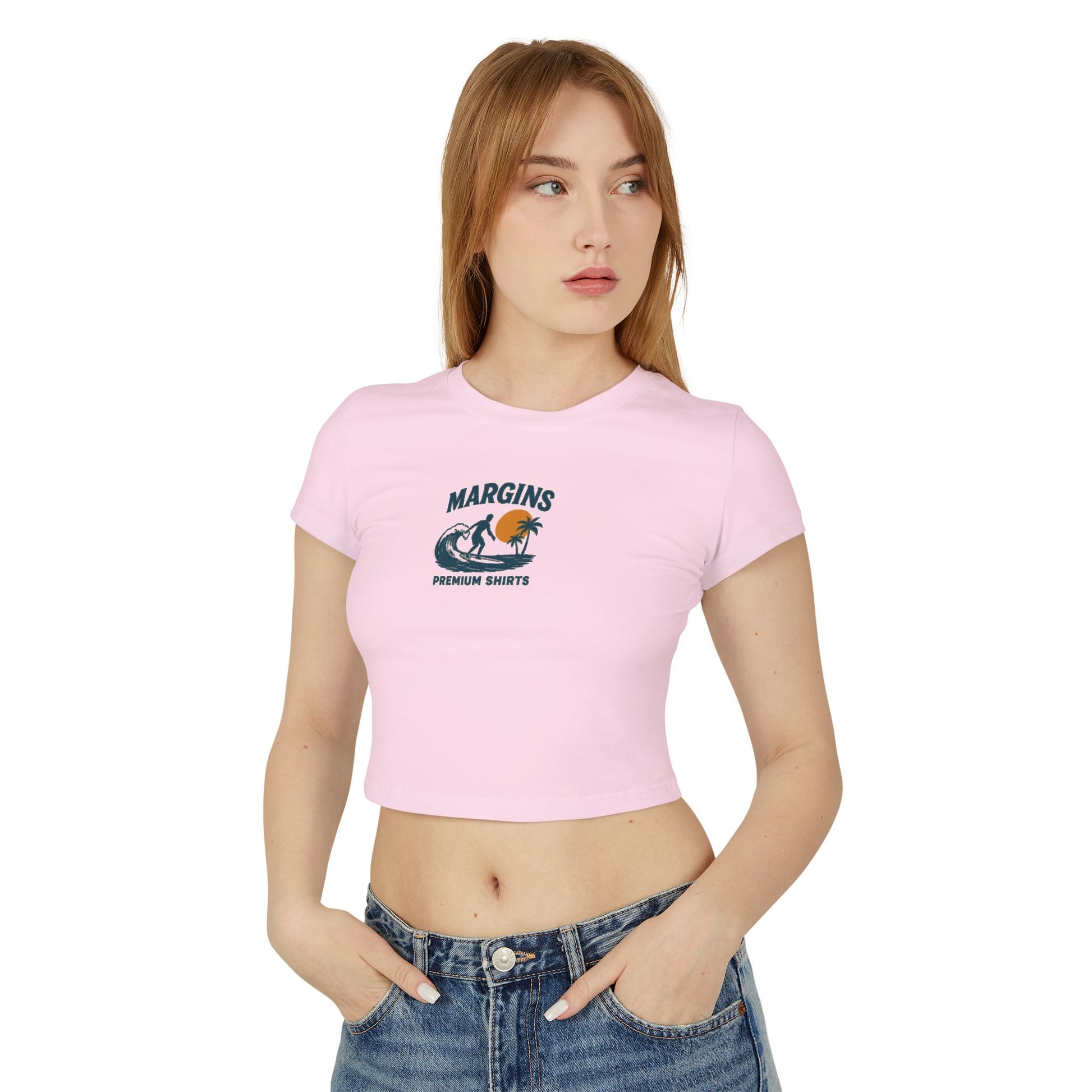 Ride the wave of style with the Margins Surf & Sun Women’s Baby Tee. Featuring a retro-inspired surfer graphic with a golden sunset and palm trees, this premium baby tee is made for laid-back vibes and coastal cool. Crafted from soft, breathable cotton with a flattering slim fit, it’s perfect for pairing with jeans, shorts, or layered under your favorite jacket. Whether you’re chasing waves or just chasing sunsets, this tee brings the ocean lifestyle wherever you go.